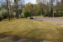 This yard was regraded, drainage and boulders intalled, front of house planted and sod installed.